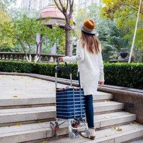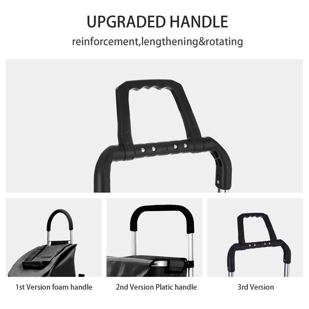 اجعل التسوق ونقل الأغراض الثقيلة أكثر سهولة مع عربة التسوق القابلة للطي للخدمة الشاقة. تم تصميمها لأقصى درجات الراحة، وهي خفيفة الوزن لكنها متينة، مما يجعلها مثالية للتسوق، حمل الغسيل، مستلزمات التخييم، أدوات البستنة، الملفات المكتبية، والمزيد. يتيح التصميم ثلاثي العجلات حركة سلسة على الأسطح المستوية مع إمكانية تسلق الدرج بسهولة، بينما توفر العجلات الأمامية الدوارة بزاوية 360 درجة مناورة فائقة. مصنوعة من سبائك الألمنيوم عالية الجودة، وتتحمل حتى 50 كجم (176 رطلاً)، كما يمكن طيها بسهولة للتخزين المدمج.