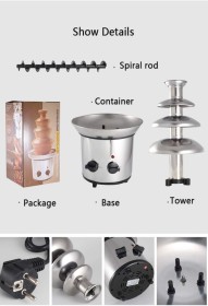 اصنع لحظات سحرية وحلويات لذيذة مع آلة نافورة الشوكولاتة—الإضافة المثالية للحفلات، حفلات الزفاف، التجمعات العائلية، والمناسبات الخاصة. سواء كنت تستمتع بأمسية دافئة في المنزل، تستضيف حفلة ممتعة، أو تضيف لمسة من الفخامة إلى مناسبة راقية، فإن نافورة الشوكولاتة المصنوعة من الفولاذ المقاوم للصدأ ستجعل كل مناسبة أكثر متعة ولذة. سهلة الاستخدام والتنظيف، مما يسمح لك بغمس الفواكه، المارشميلو، البسكويت والمزيد للحصول على تجربة شوكولاتة غنية ولا تُنسى مع العائلة والأصدقاء!
