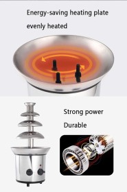 تسخين متساوٍ وسلس – يضمن تدفقًا مثالياً للشوكولاتة للحصول على تأثير الشلال الفاخر.