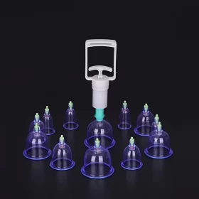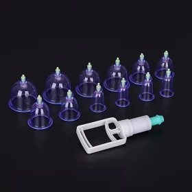 طقم أدوات الحجامة – ١٢ كأس مع مضخة يدوية