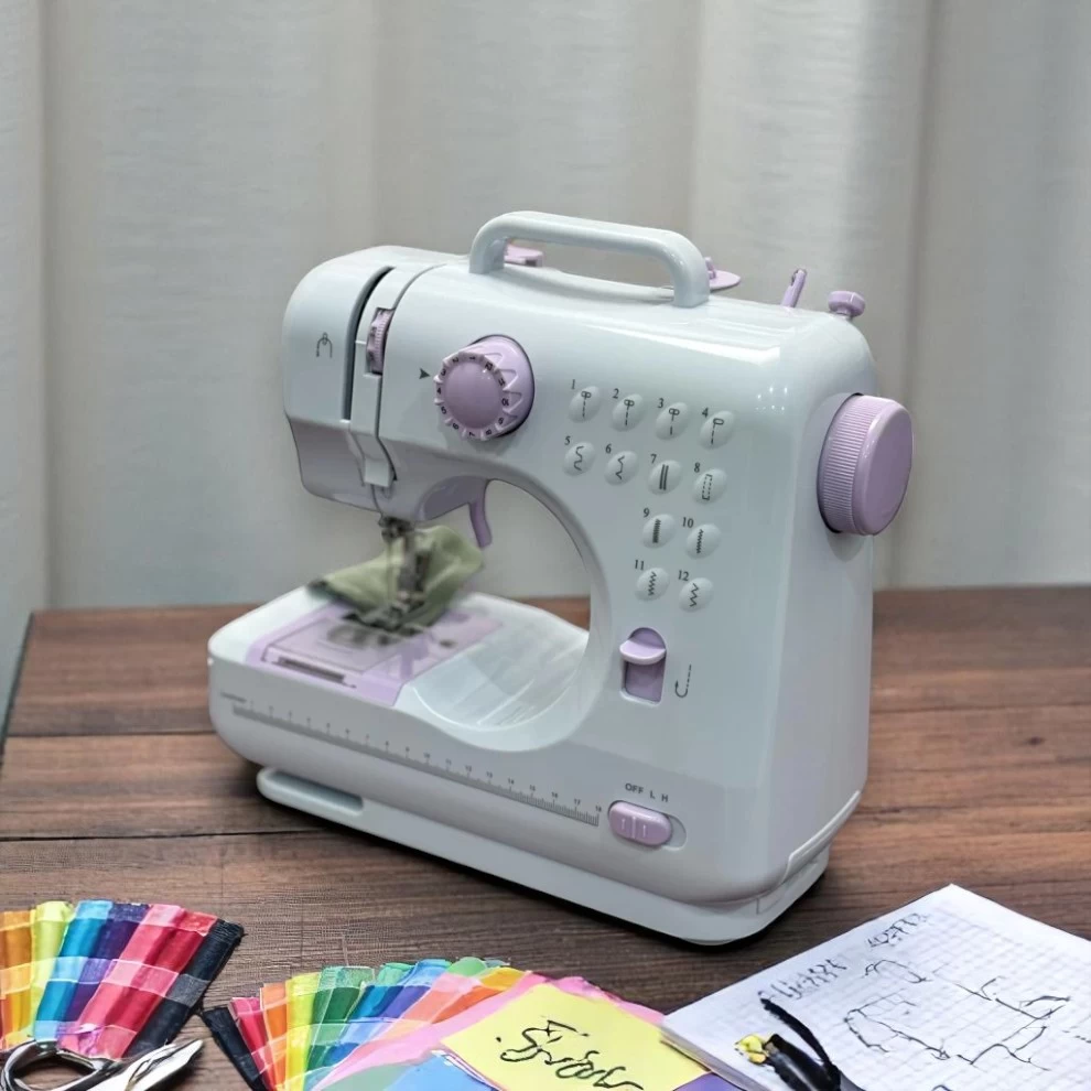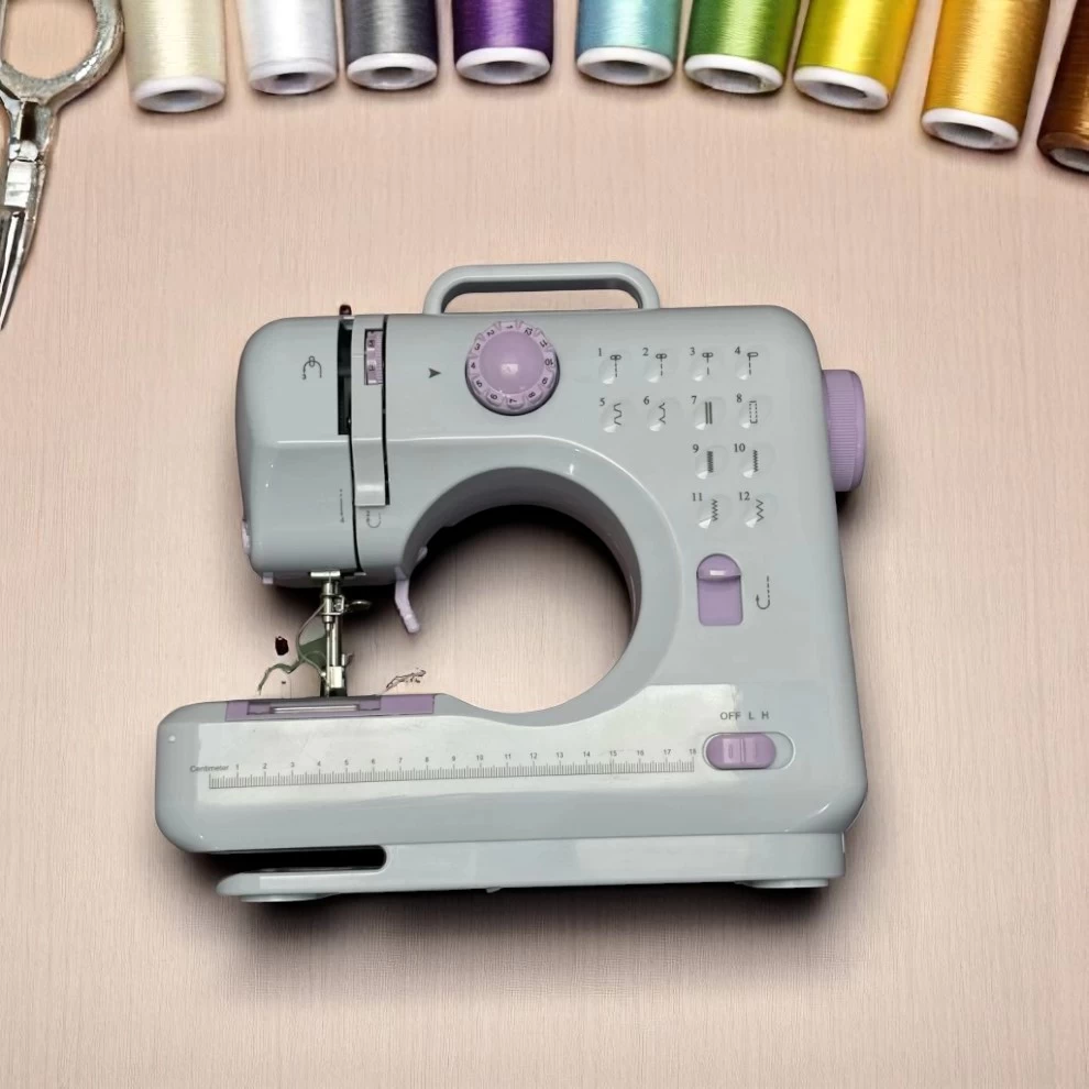 🧵 12 غرزة مدمجة – تشمل الخياطة المستقيمة، الزجزاج، العروة، وغيرها.