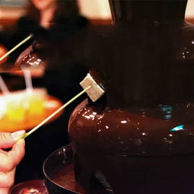 • تدفق مستمر للشوكولاتة المذابة لتغميس الفواكه والبسكويت والمارشميلو.