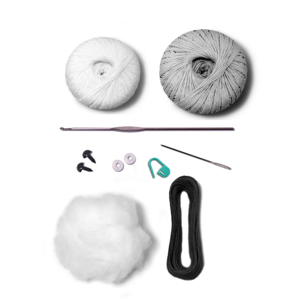 All Circulo kits come in a frosted resealable bag and contain yarn, crochet hook, tapestry needle, safety eyes, stuffing, stitch marker and pattern.