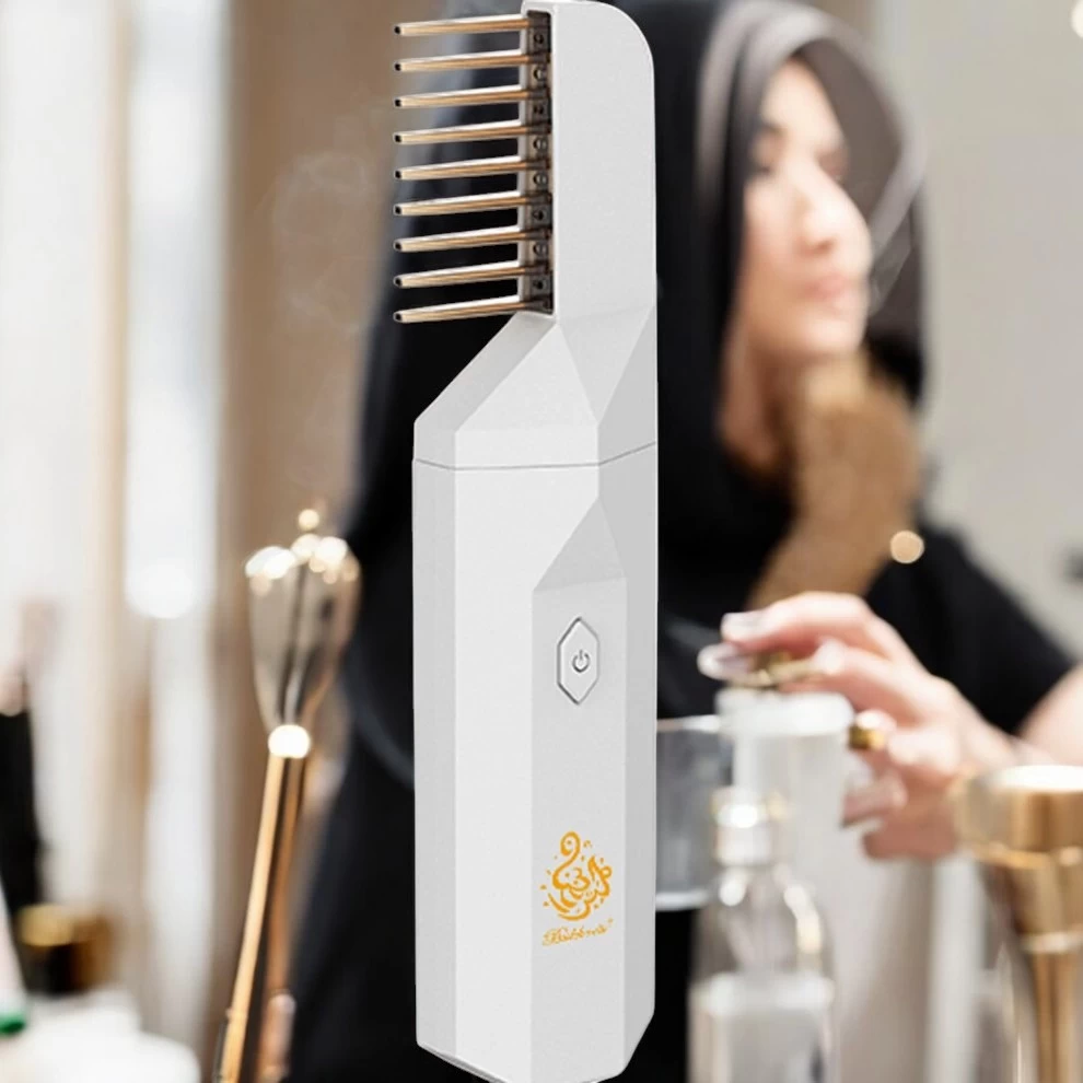 استمتعي برائحة العود الفاخرة في شعرك وملابسك بسهولة وأمان مع هذه المبخرة الإلكترونية العصرية. بدون فحم، بدون لهب – فقط عبير فاخر!