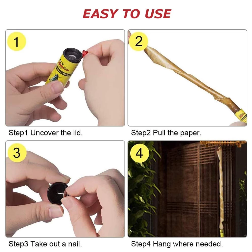 🪰 مصيدة الذباب اللاصقة – عبوة 4 لفات (آمنة وغير سامة)