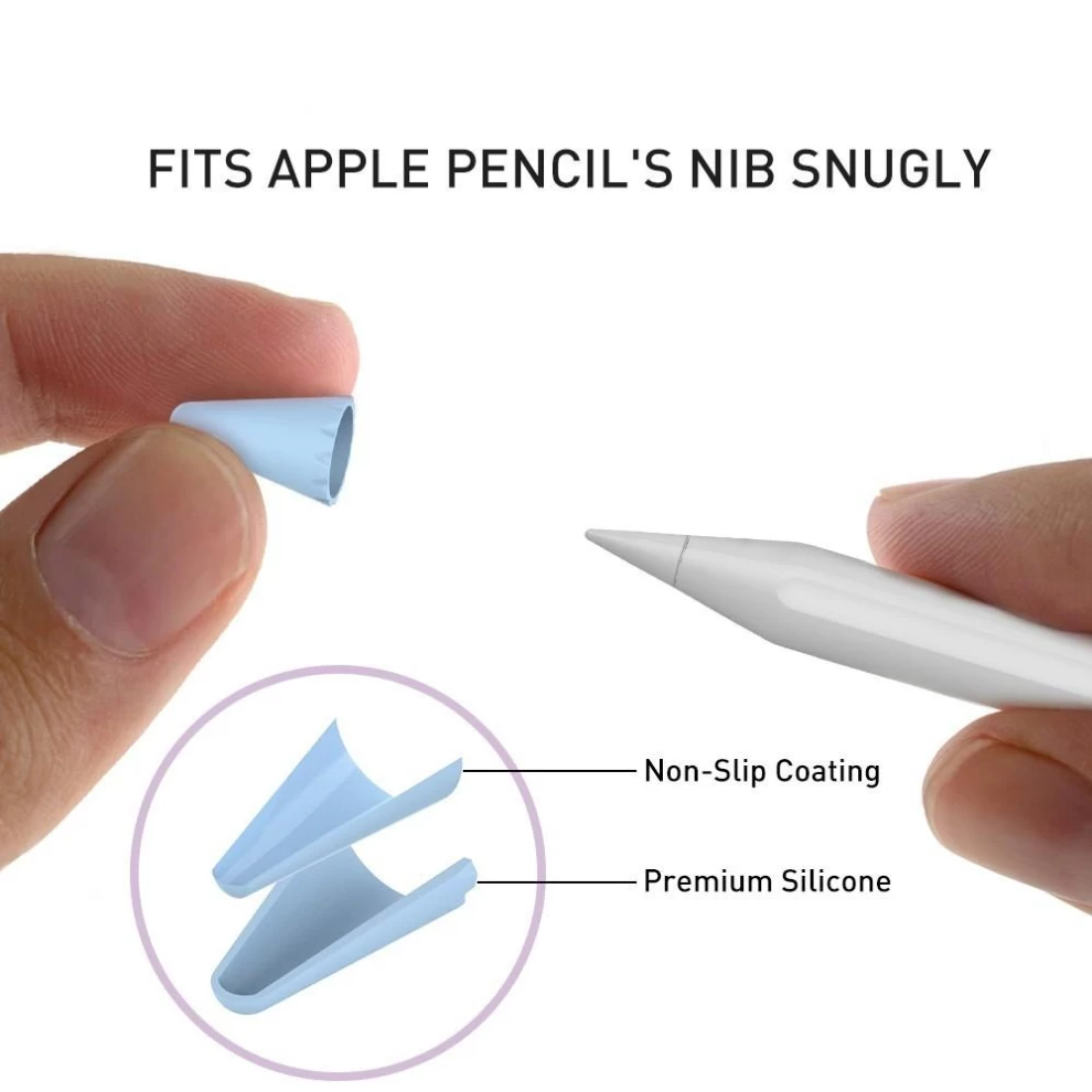 يوفر طرف / طرف غير قابل للانزلاق وعالي الحساسية تحديد المواقع بدقة ، ويوفر راحة كبيرة في الكتابة. يحمي طرف قلم Apple Pencil من التلف المادي عندما لا تكتب.