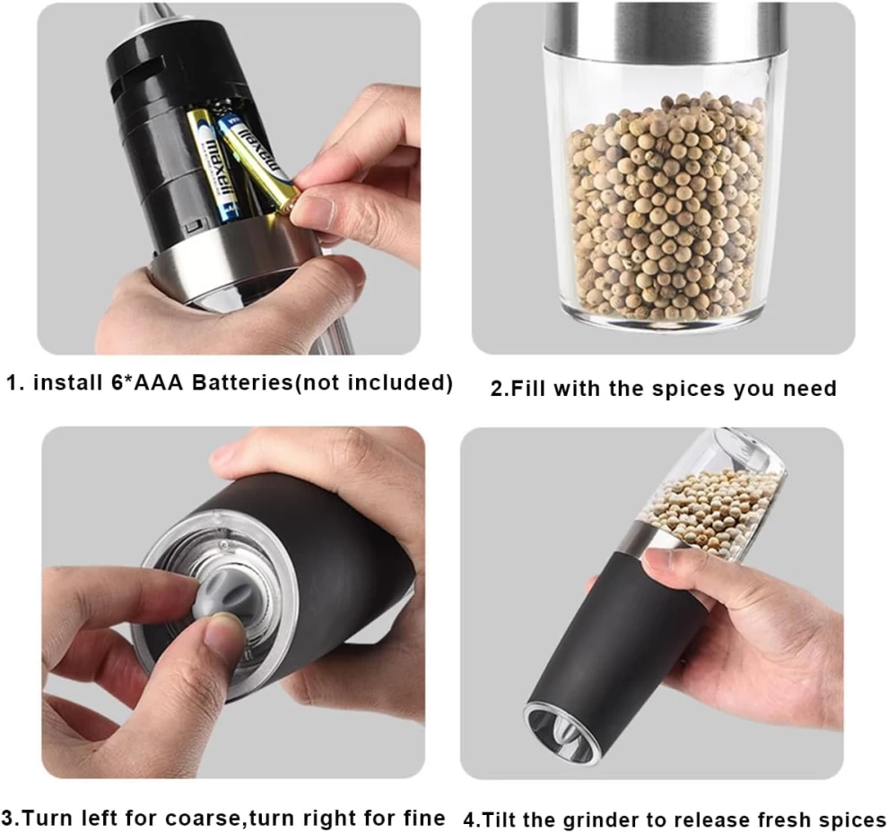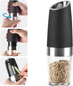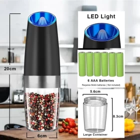 على عكس المطاحن اليدوية، ببساطة قم بإمالة مطحنة الملح والفلفل لبدء الهزازات تلقائيًا. مثالي للمطابخ المنزلية المزدحمة والذين قد يكون لديهم قدرة محدودة على الحركة في أيديهم