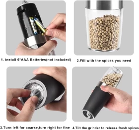 مطحنة فلفل اسود وتوابل كهربائية قابلة لتعديل وسهلة الاستخدام.مناسبة للفلفل الأسود والفلفل الأبيض وملح البحر والتوابل الصلبة الأخرى.