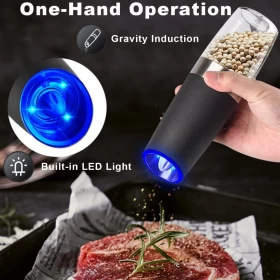 مطحنة ملح وفلفل كهربائية قابلة لإعادة الشحن مزودة بمصباح LED
