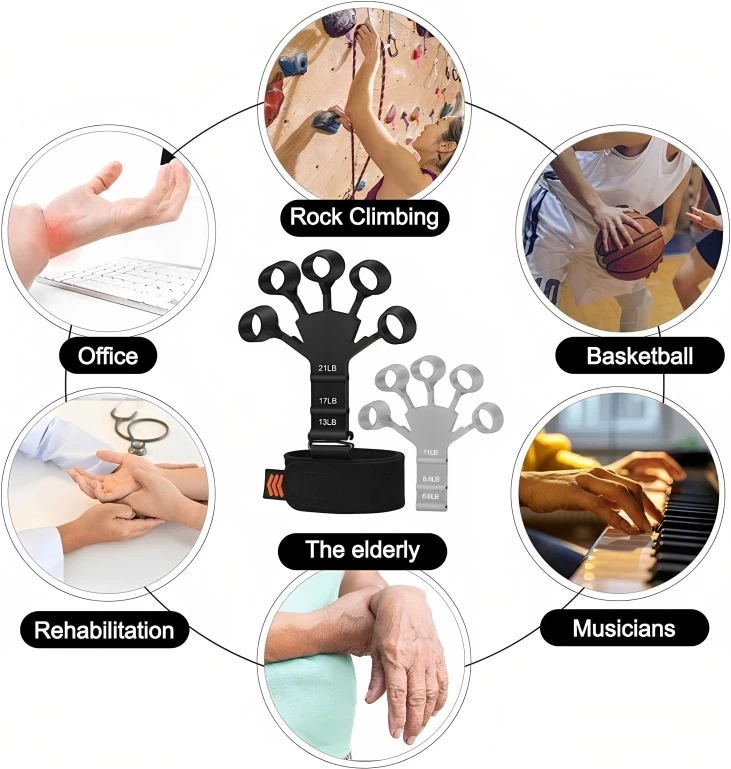 الرياضيون والآلات الموسيقية: يعتبر جهاز تمرين قوة القبضة مثاليًا لتطوير القوة والمرونة في الرسغين والأصابع والذراعين.