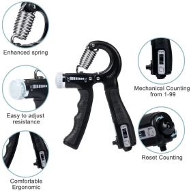 تحتوي مجموعة تقوية قبضة اليد الخاصة بنا على مدرب مقاومة قابل للتعديل (0-132 رطلاً / 0-60 كجم) وشريط مقاومة نقالة الإصبع. يمكن للمستخدم استخدامه يوميًا ويمكنه علاج إصابات اليد والتهاب المفاصل الروماتويدي والتهاب المفاصل والنفق الرسغي والتهاب الأوتار والكسور وكسور المعصم وجراحة الأوتار