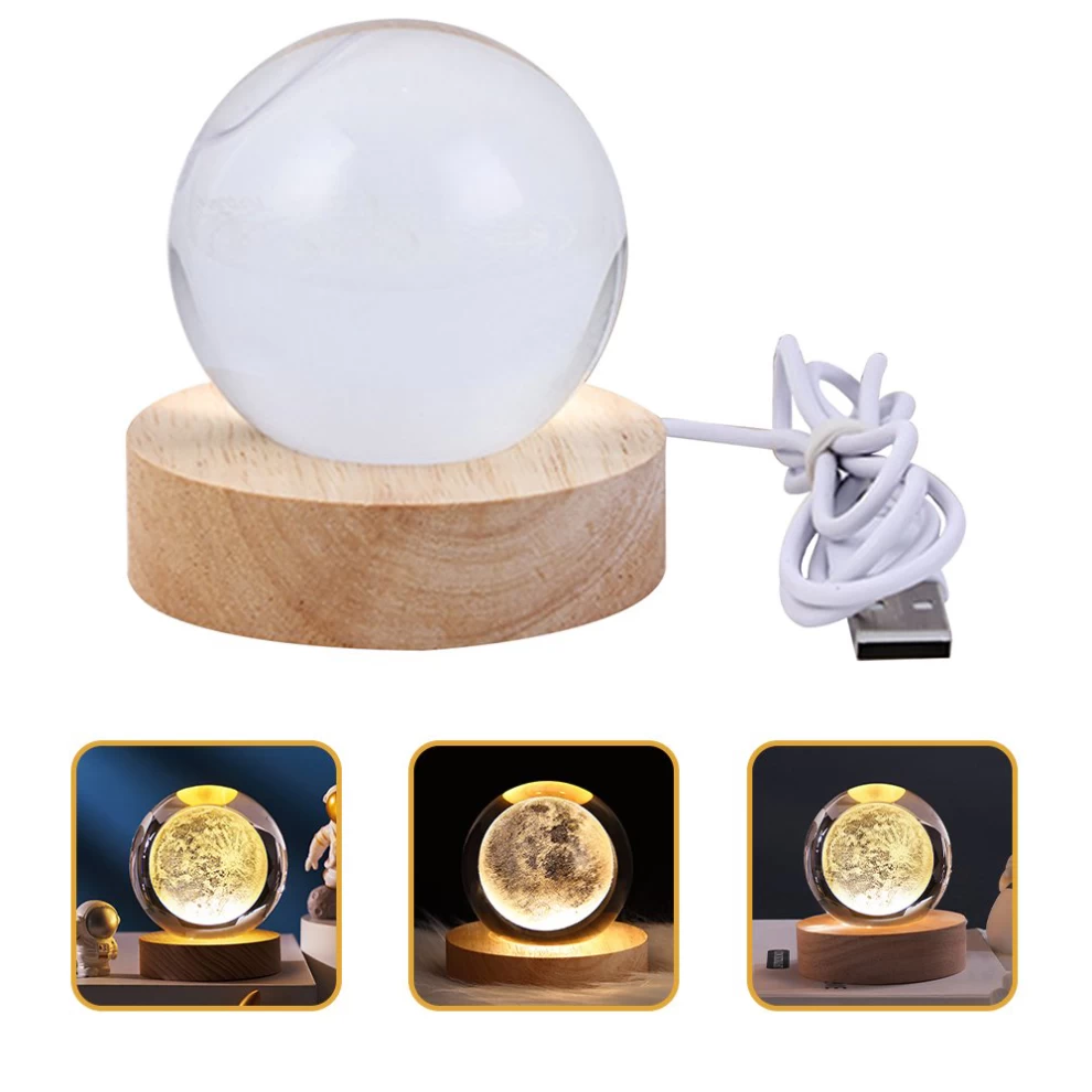 🔮✨ مصباح كرة الكريستال بقاعدة خشبية – إضاءة دافئة وأنيقة للمنزل