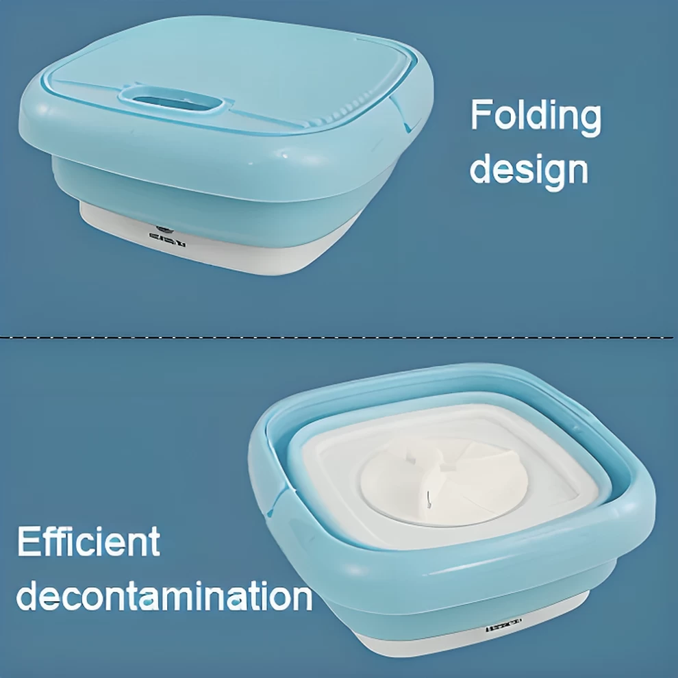 حافظ على ملابسك نظيفة ومنعشة في أي مكان مع الغسالة الصغيرة القابلة للطي! مصممة لتكون سهلة الحمل، فعالة، وسهلة الاستخدام، هذه الغسالة خفيفة الوزن وقابلة للطي، مما يجعلها مثالية للسفر، الشقق الصغيرة، السكن الطلابي، أو الغسيل السريع. مع نظام التحكم بزر واحد، أصبح الغسيل أسهل من أي وقت مضى!