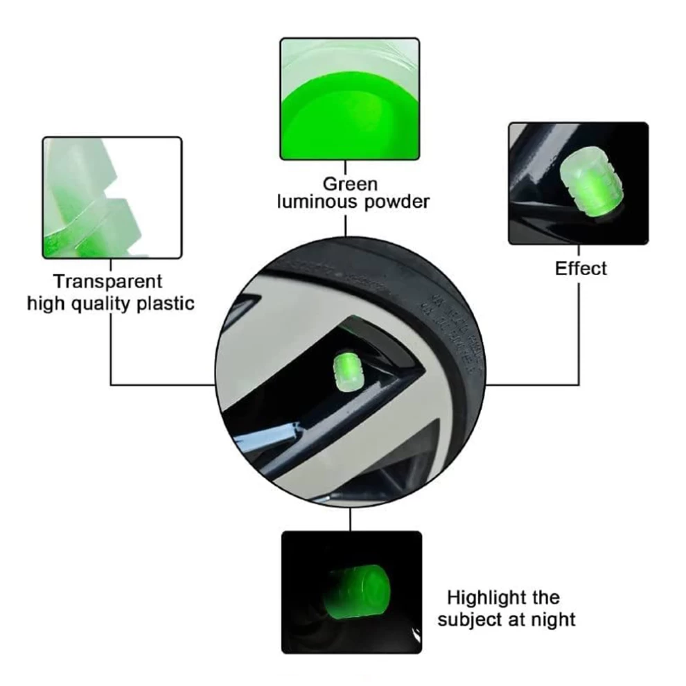 أضف لمسة عصرية ومضيئة لإطارات سيارتك أو دراجتك، مع حماية إضافية للصمامات من التلف والعوامل الخارجية. مثالي للقيادة الليلية والرحلات!