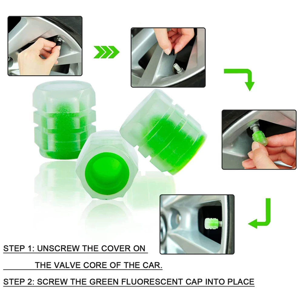 • 2 × غطاء صمام إطار مضيء (لون أخضر)