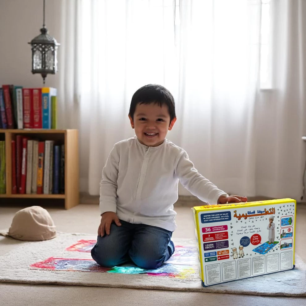 اجعل تعليم الصلاة للأطفال تجربة ممتعة وتفاعلية مع السجادة التفاعلية المصممة لتعليمهم خطوة بخطوة بطريقة شيقة. بفضل المفاتيح الحساسة للمس والتسجيلات المسبقة، يمكن للأطفال بسهولة تعلم أوقات الصلاة، الوضوء، السور، الأدعية، والمزيد. مع دعم لعدة لغات وتصميم آمن ومتين، تعتبر هذه السجادة المزيج المثالي بين التعليم والمرح للتعلم الإسلامي في المنزل.