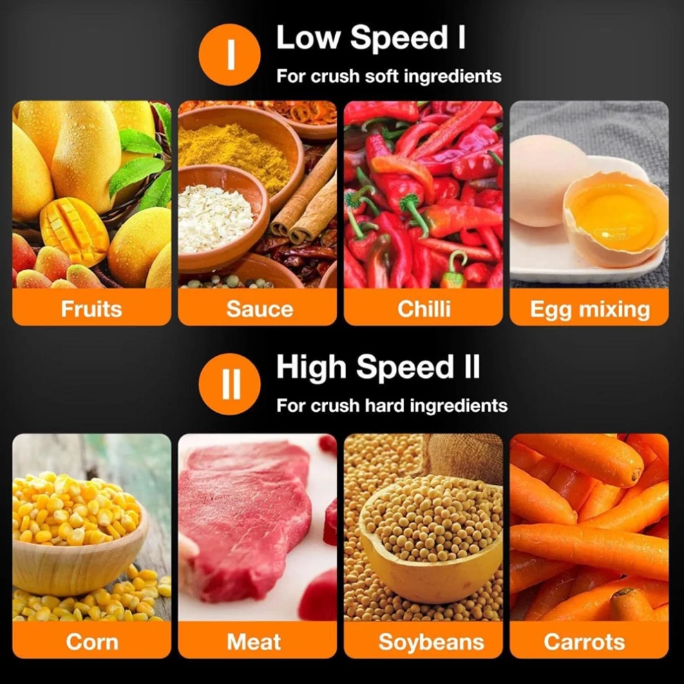 🥕 متعددة الاستخدامات – للحوم، الخضار، المكسرات، الصلصات وطعام الأطفال.