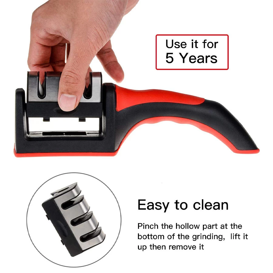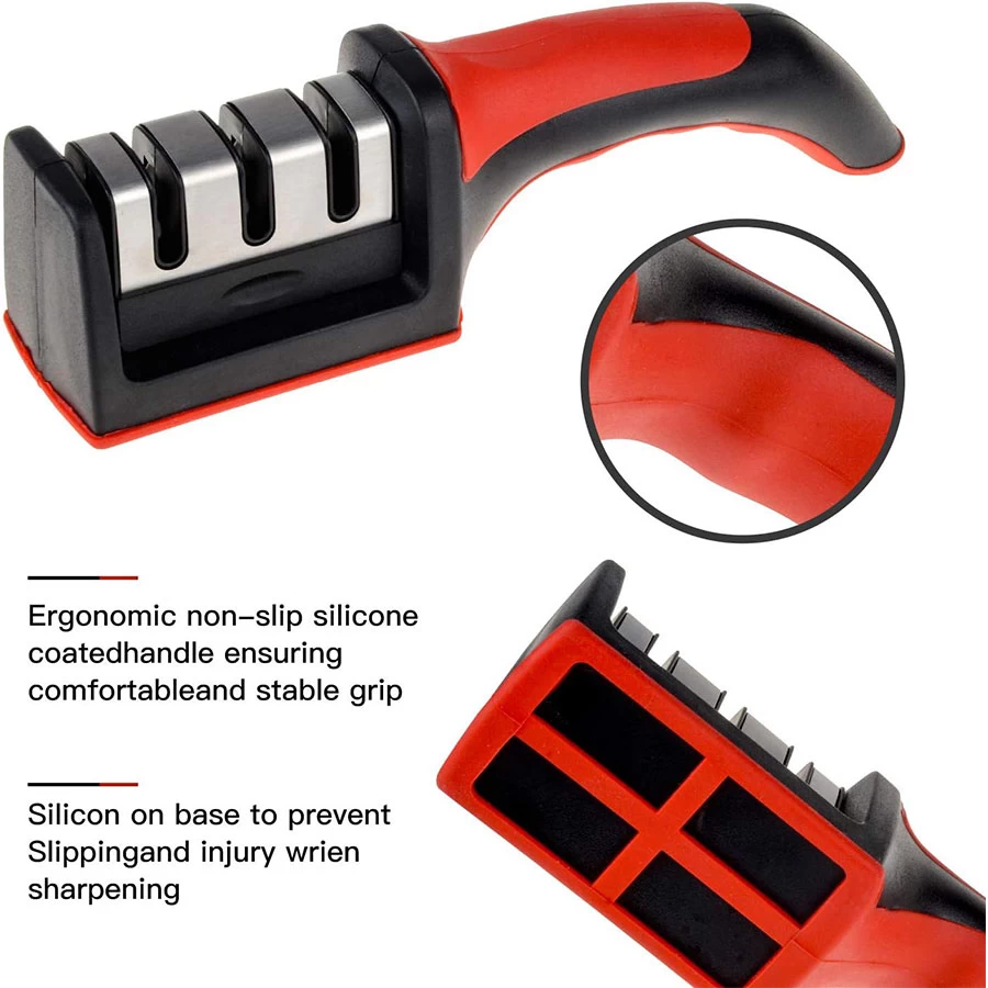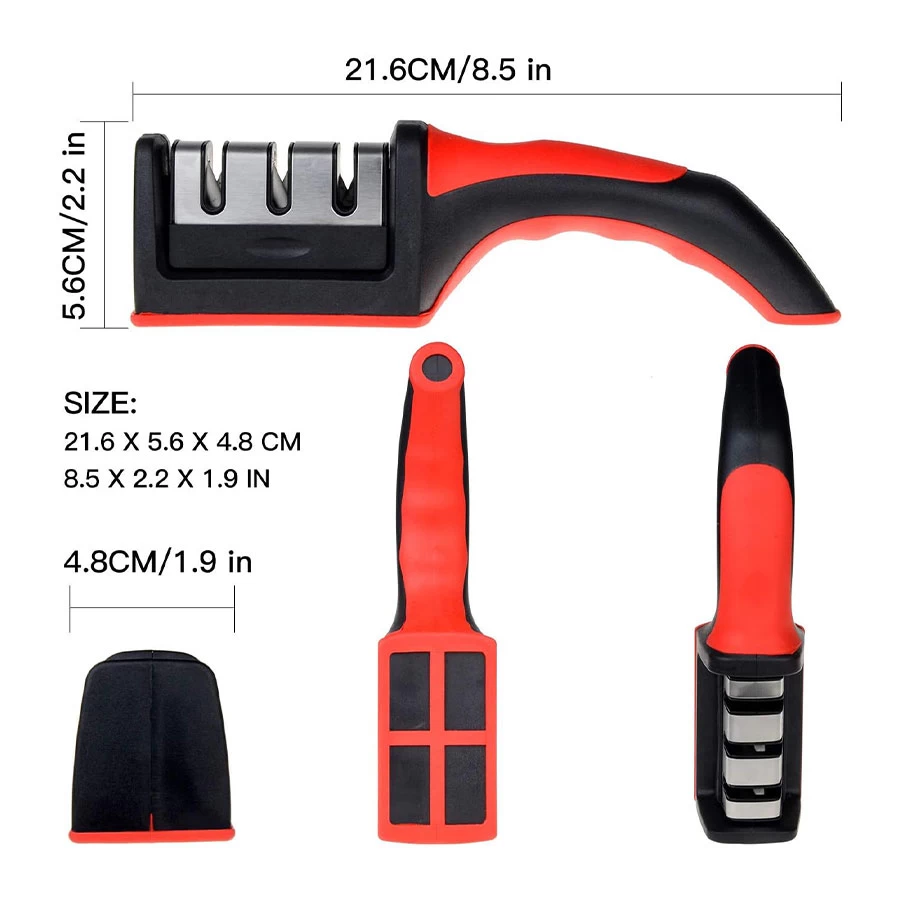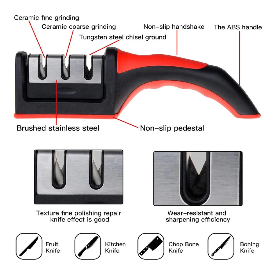 • إضافة أنيقة لأي مبراة سكين منزل: المقبض مصنوع من بلاستيك أكريلونتريل بوتادين ستايرين الصلب، إنه قوي ومتين ومصمم ليدوم مدى الحياة. مبراة سكين المطبخ مصنوعة من مواد عالية الجودة، وستعمل السكاكين كالجديدة.