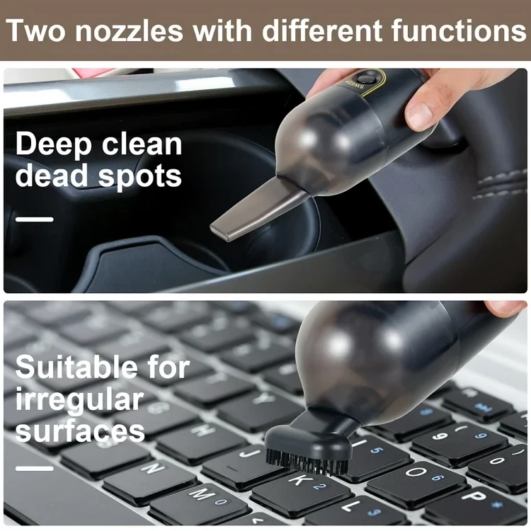 • استمتع بقوة الشفط المذهلة للمكنسة الصغيرة، القادرة على سحب الفتات والشعر والغبار والرمال وغيرها.