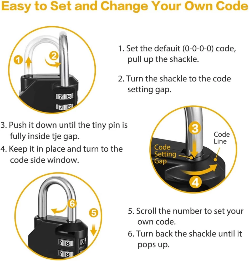 • أمان شديد التحمل 10 مرات - يوفر القفل المجمع ذو الأرقام الأربعة 10000 اختيار فريد من نوعه مقابل 3 أقفال أرقام.