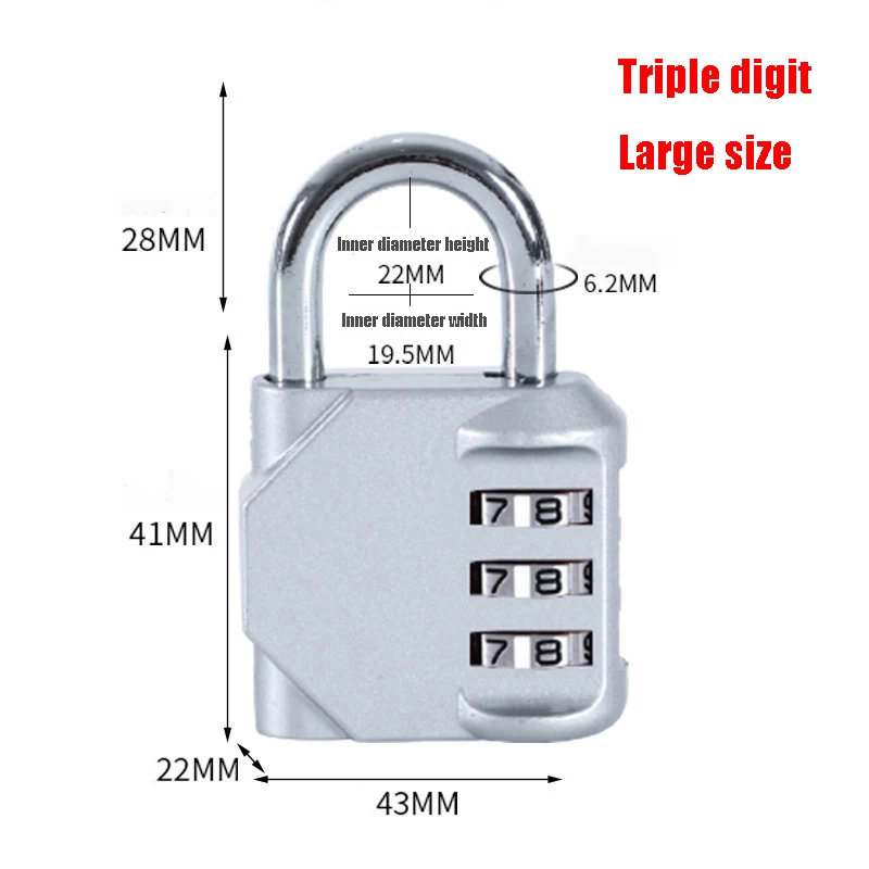 قفل شنط سفر قفل امان مصنوع من خليط معدني من الزنك، قفل ذي 3 ارقام