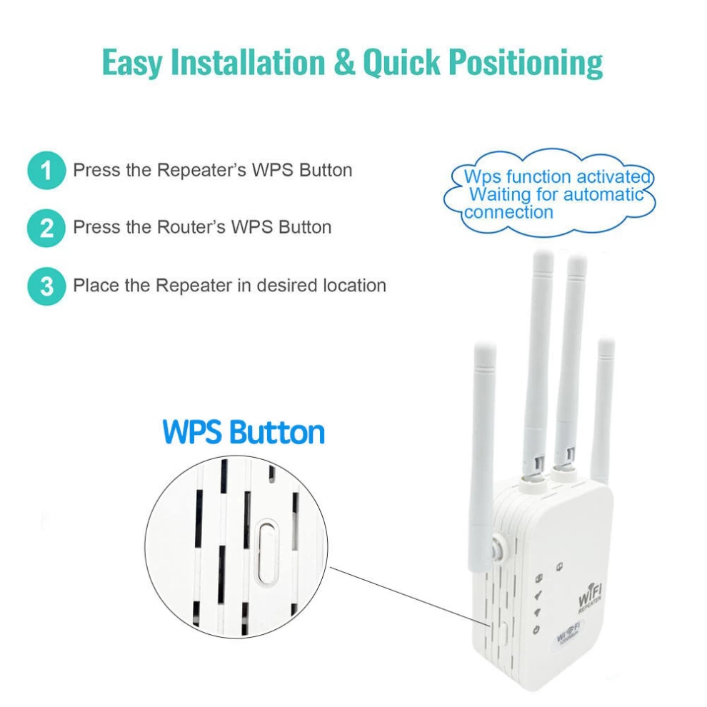 • جهاز تقوية الإشارة: يمكن أن يساعد موسع نطاق WiFi هذا في تضخيم شبكة wifi الخاصة بك، وتوسيع الإشارة إلى مسافة أكبر، والقضاء على مناطق wifi الميتة حتى تتمكن من استخدام الشبكة في أي منطقة في منزلك. لا داعي للقلق بشأن الإشارات الضعيفة بسبب المسافة والجدران والأرضيات.