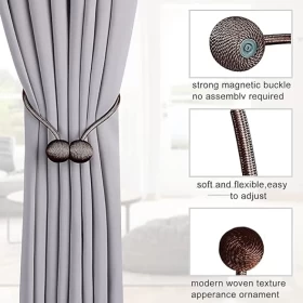 • سهلة الاستخدام والتخزين - يمكن توصيلها بسهولة ولن تنزلق من الستائر، وعندما لا تستخدمها، يمكنك تثبيت الستارة