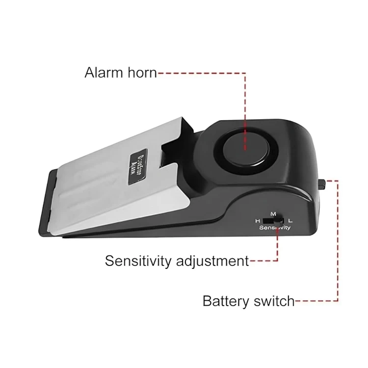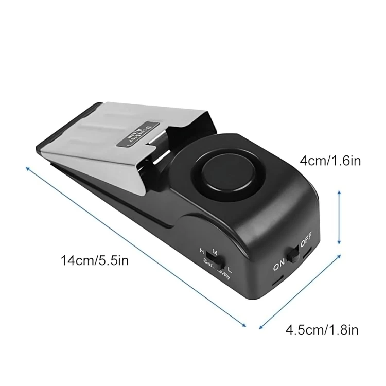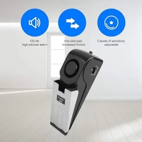 أمان منزلك أو غرفتك في الفندق أو مكتبك باستخدام حاجز الباب المحمول مع الإنذار. مصمم لمنع الدخول غير المصرح به مع إطلاق صوت إنذار مرتفع عند محاولة فتح الباب بالقوة، مما يوفر أقصى حماية في أي مكان. هذا الجهاز المضغوط وسهل الاستخدام مثالي للمنازل، الفنادق، المهاجع، والمكاتب، ويوفر راحة البال بفضل تصميمه المزود بوسادة مضادة للانزلاق ومستويات حساسية قابلة للتعديل.