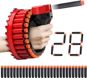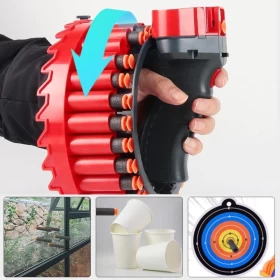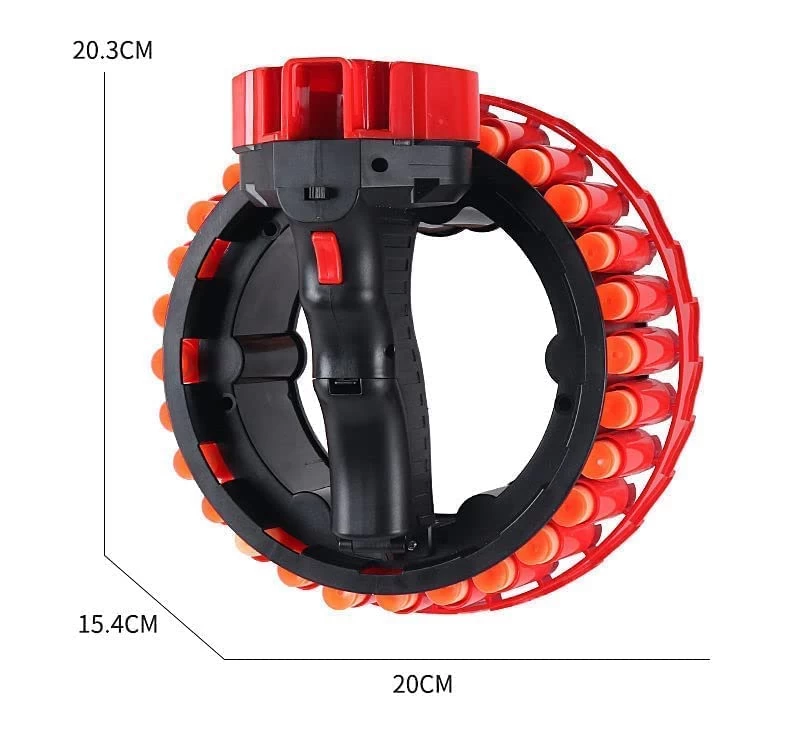 لعبة مسدس الطلقات الاتوماتيكي مع مشبك خرطوشة دوار 28 طلقة - اسود احمر