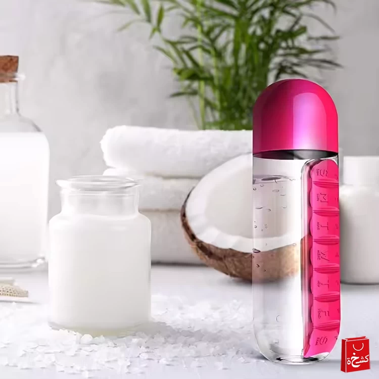 حافظ على الترطيب والتنظيم في نفس الوقت! 🌟 تجمع زجاجة الماء مع منظم الحبوب بين زجاجة بسعة 600 مل وعلبة من 7 خانات للأدوية والفيتامينات، لتكون الرفيق المثالي للسفر والعمل والجيم. تصميم عملي يساعدك على الالتزام بروتينك الصحي اليومي بسهولة.