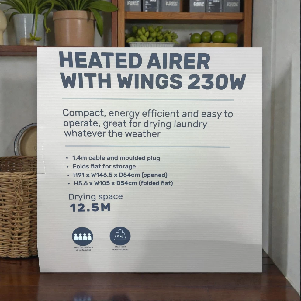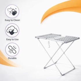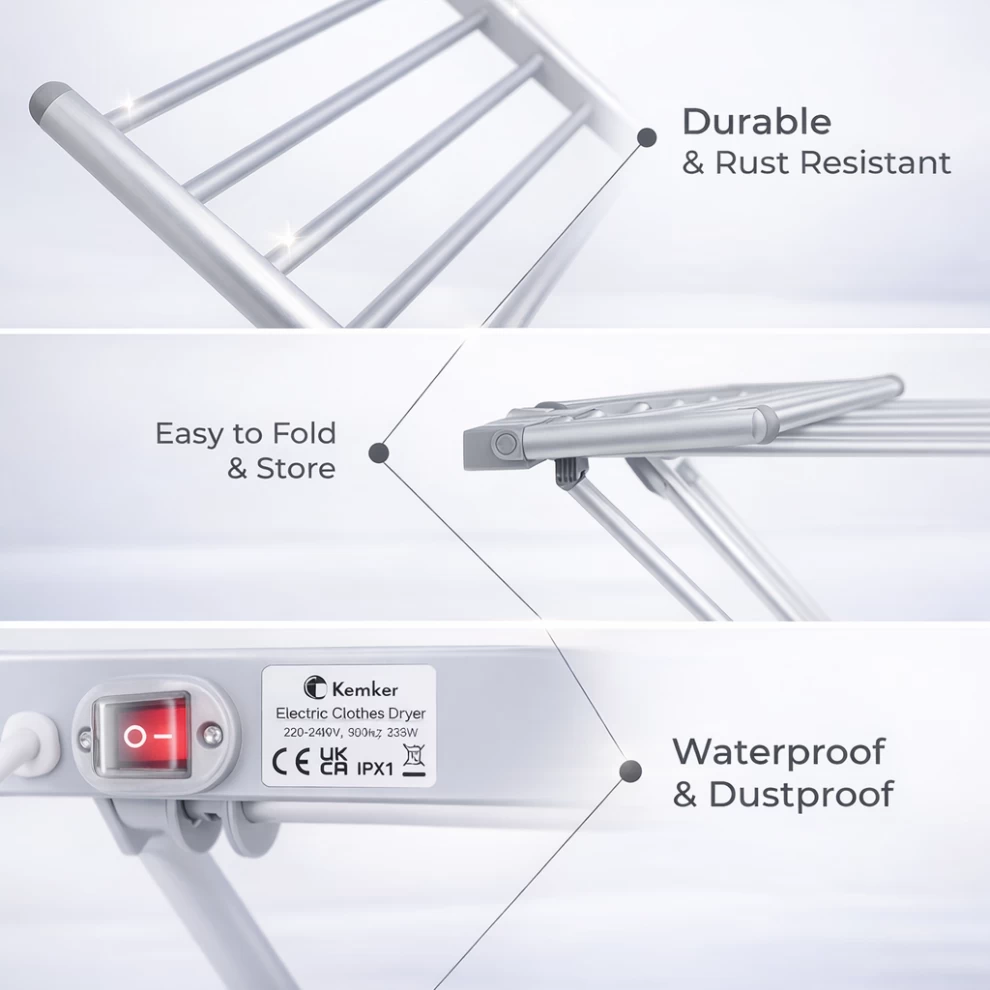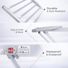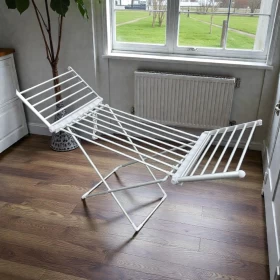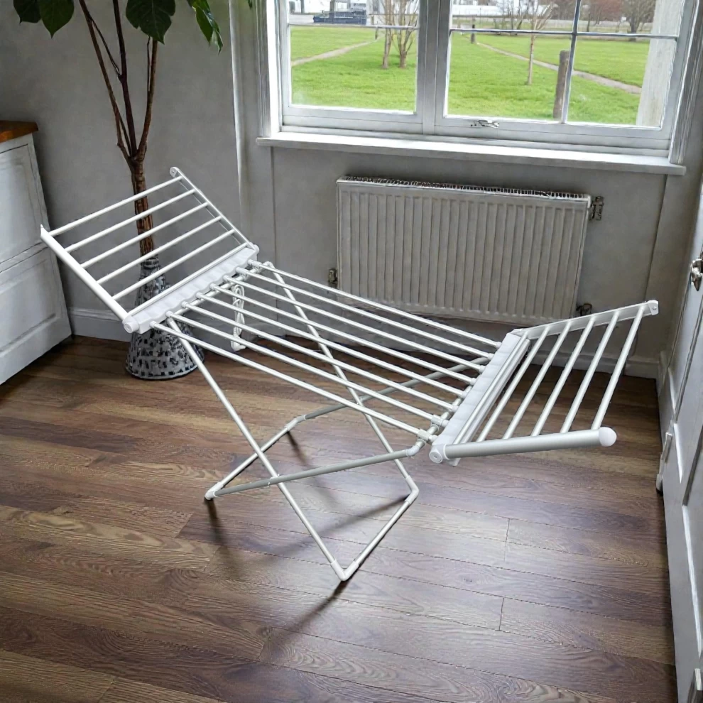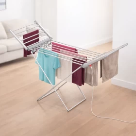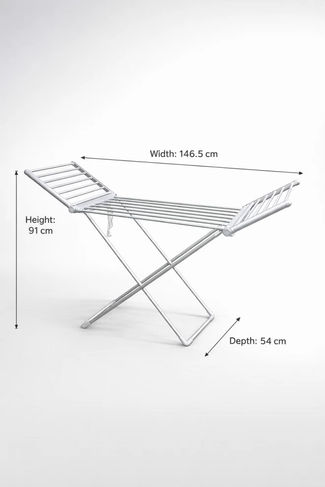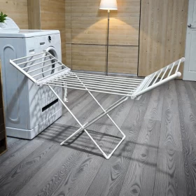 جفف ملابسك بكفاءة وهدوء باستخدام هذا المجفف الكهربائي القابل للطي. مثالي للاستخدام الداخلي والمنازل الصغيرة وفي الأيام الممطرة!