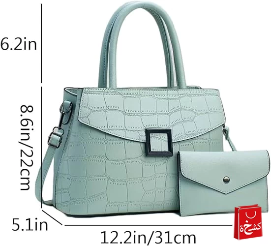 طقم حقيبة كتف ويد بنقش تمساح 2 قطع اخضر فاتح