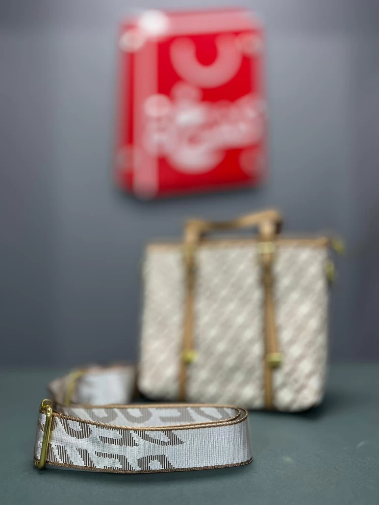 شنطة نسائية أنيقة الجلد بلون ابيض- ذهبي