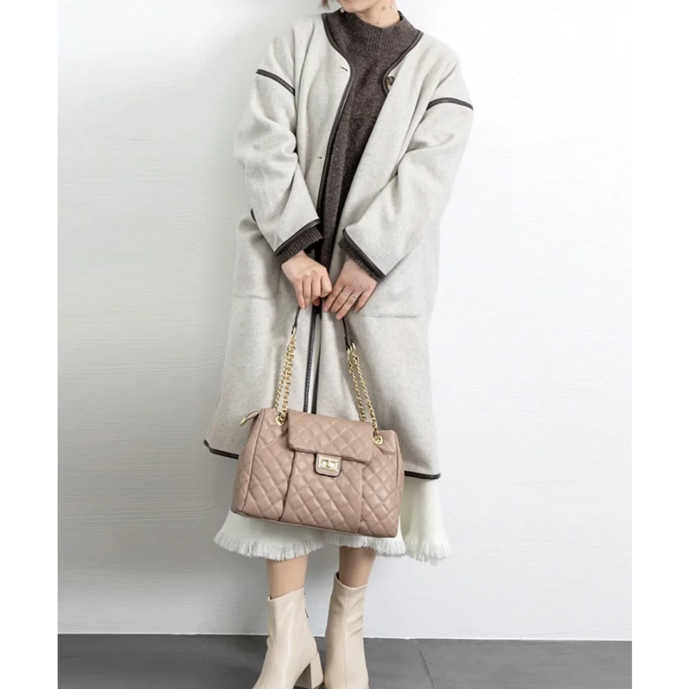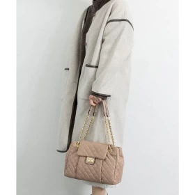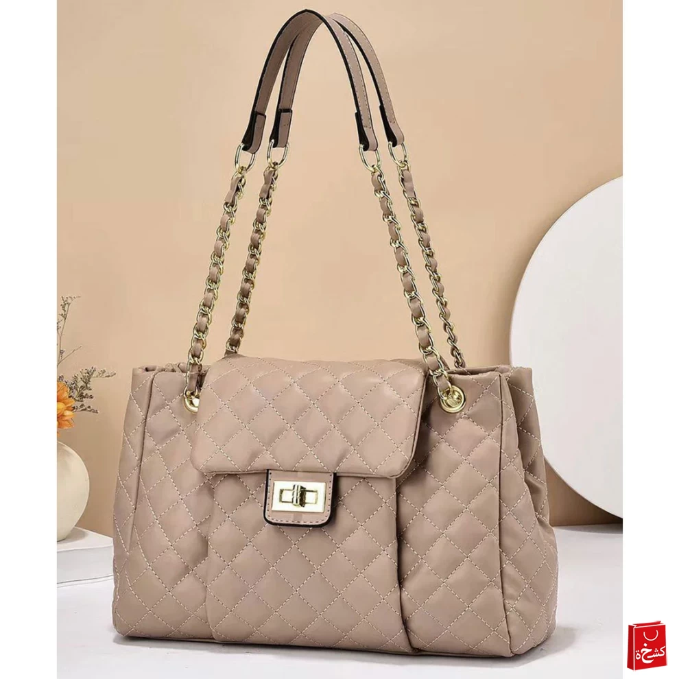 شنطة نسائية فاخرة مصنوعة من الجلد بلون بيج
