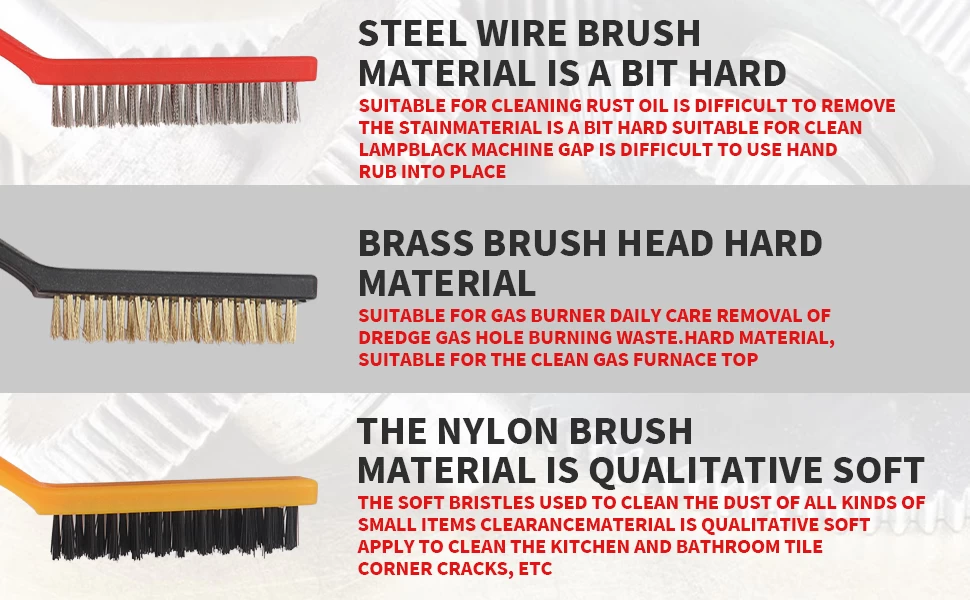 تخلص من الصدأ والأوساخ العالقة مع مجموعة مكونة من 3 فرش تنظيف سلكية! مثالية لتنظيف الأدوات، الأسطح المعدنية، الشوايات والمعدات، وتصل بسهولة إلى الأماكن الضيقة لتسهيل أعمال الصيانة والترميم.
