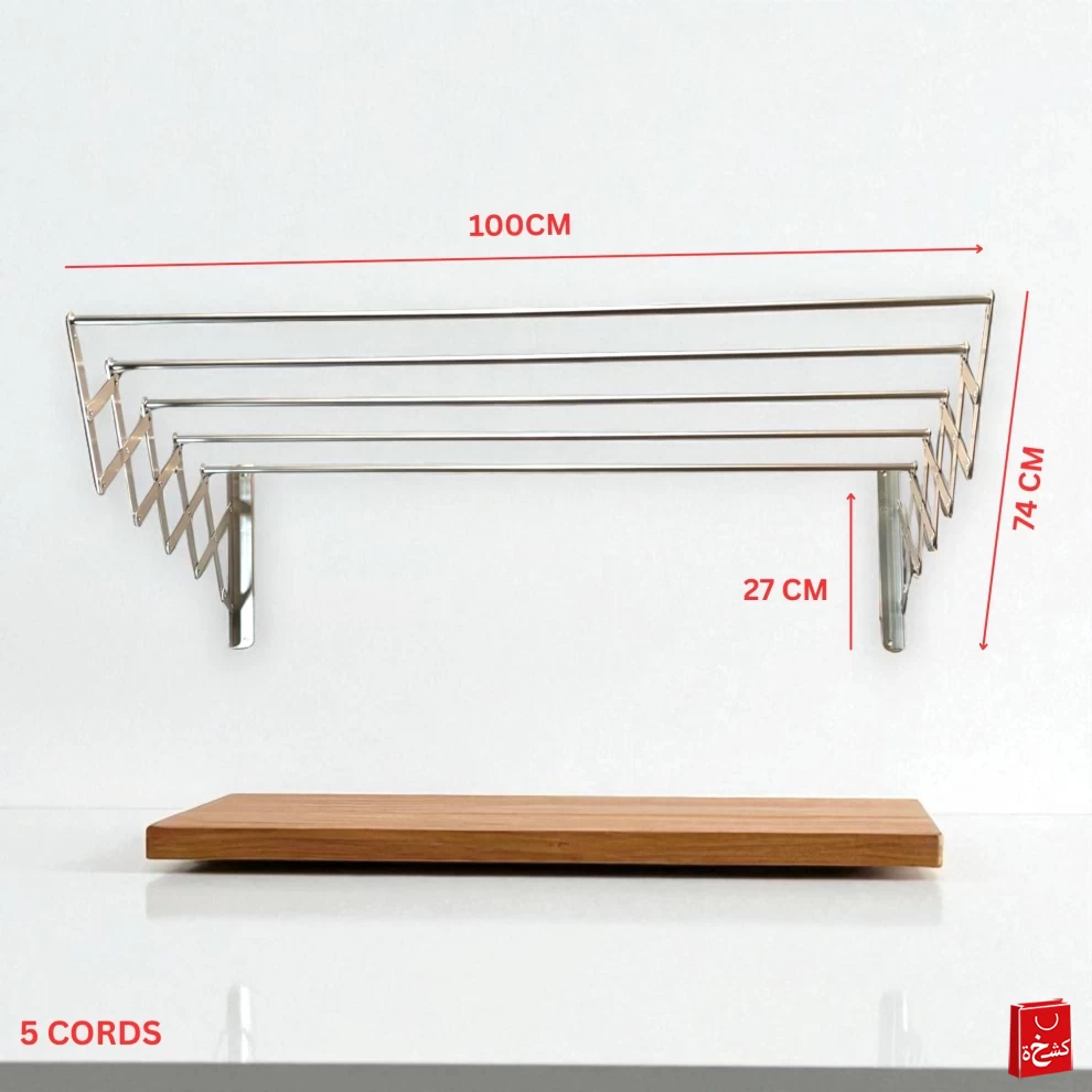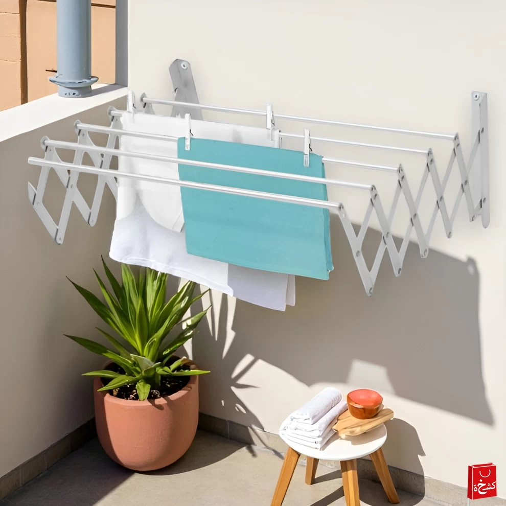 منشفة تجفيف ملابس قابلة للطي تُثبت على الحائط – 5 أعمدة – 100 سم