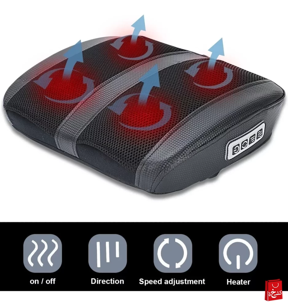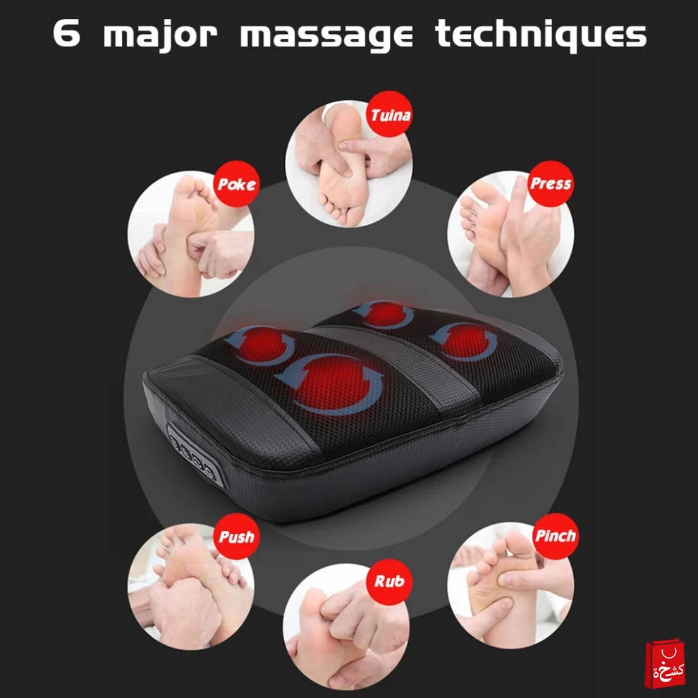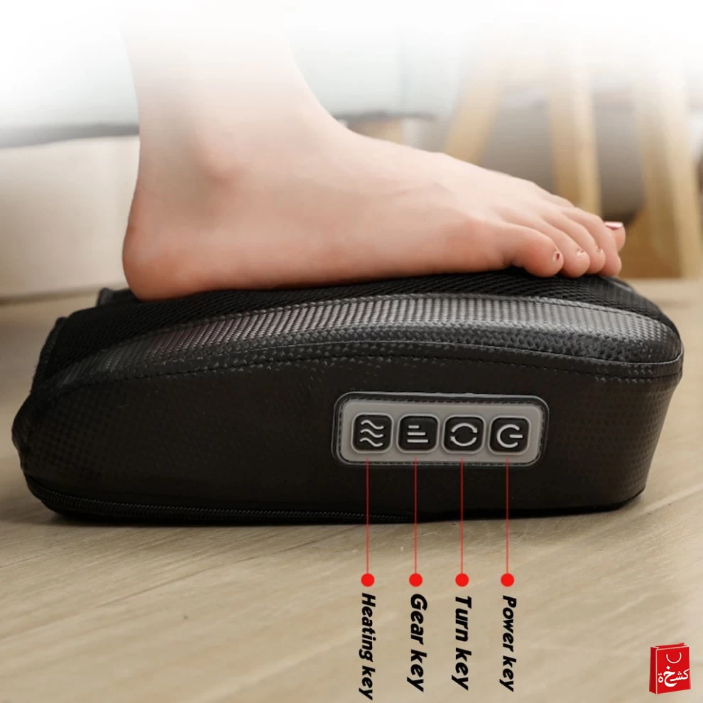 عجن عميق وقوي – مزوّد بـ 4 رؤوس تدليك و18 نقطة دوارة لتخفيف التوتر 🔄💪