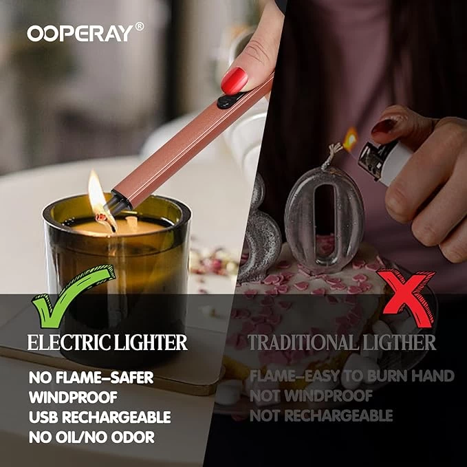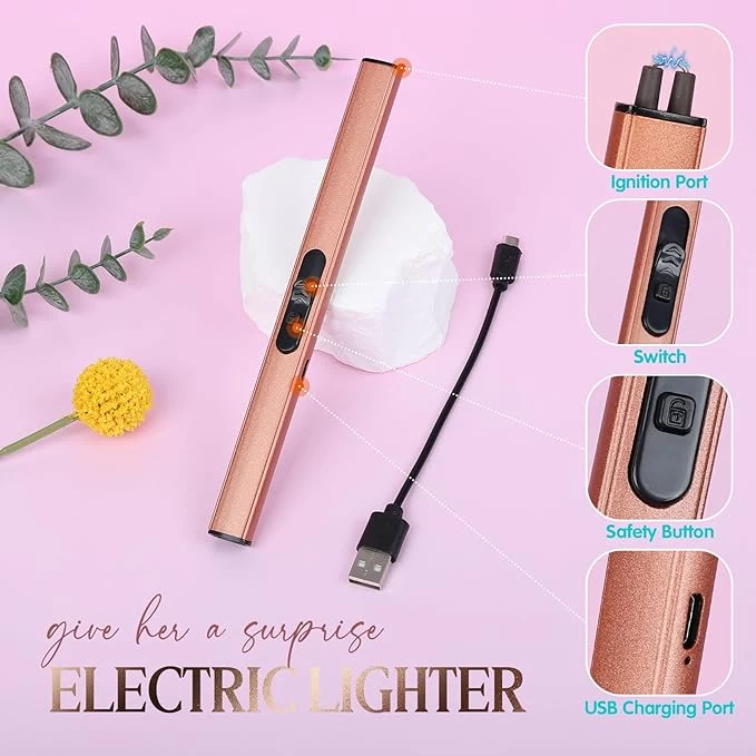 •  يمكن للتدفئة القوسية الولاعة الكهربائية تسخين الأشياء في درجة حرارة عالية في وقت قصير. ولاعة الشموع المطورة تعتمد تصميمًا مقاومًا للرياح، ويمكنك استخدامها تحت أي ظروف، إنها أدوات أخف وزنًا مثالية للاستخدام في الهواء الطلق.