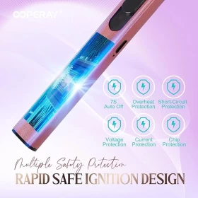 • ولاعة كهربائية بدون الحاجة إلى غاز، ولا حاجة إلى سائل، ولا حاجة إلى لهب. لأسباب أمنية، تتمتع الولاعة بحماية متعددة خاصة، إذا كان وقت التسخين طويلاً جدًا، فسوف تقطع الولاعة الطاقة تلقائيًا. بالإضافة إلى ذلك، تصميم قفل أمان لإبقاء الأطفال بعيدًا عن النار.