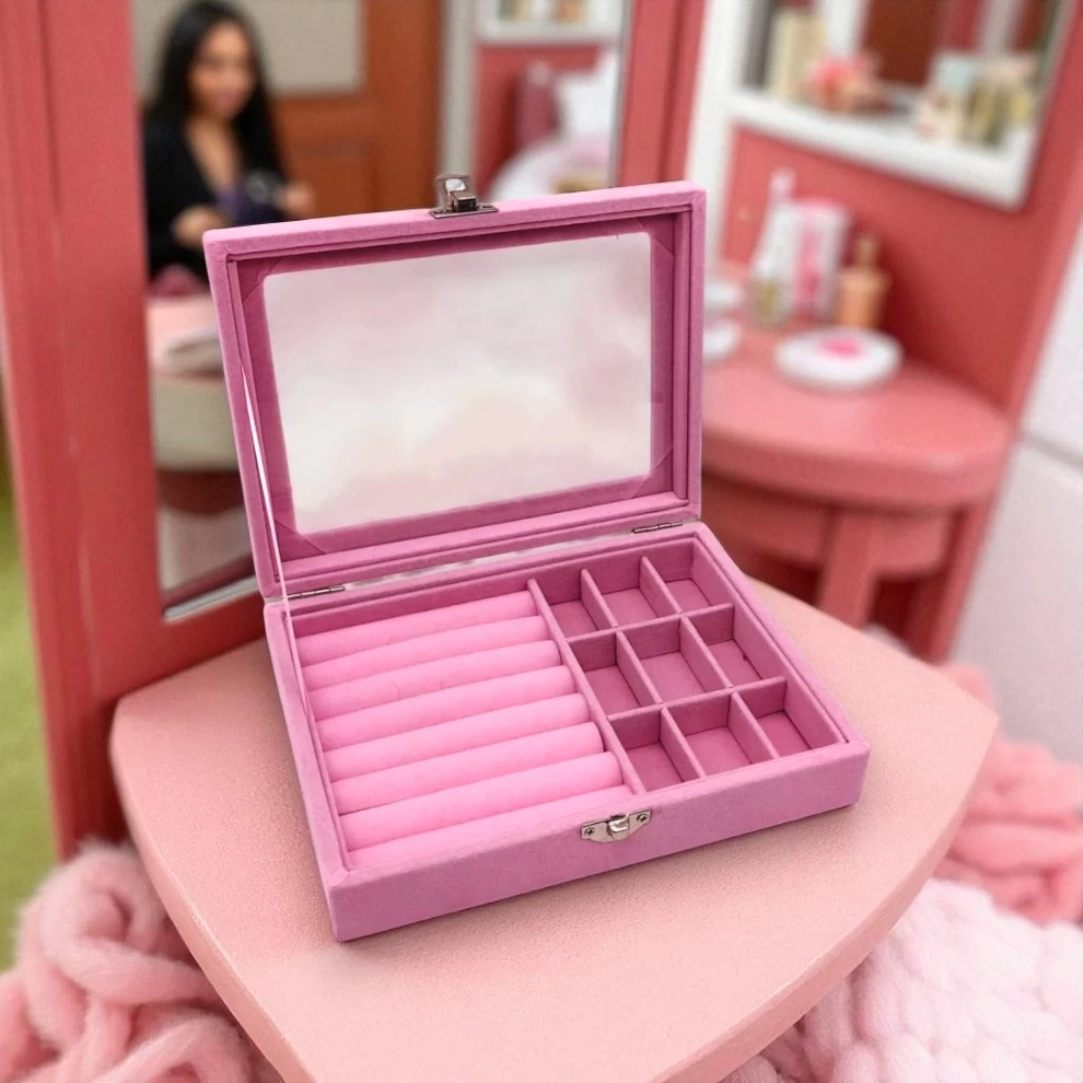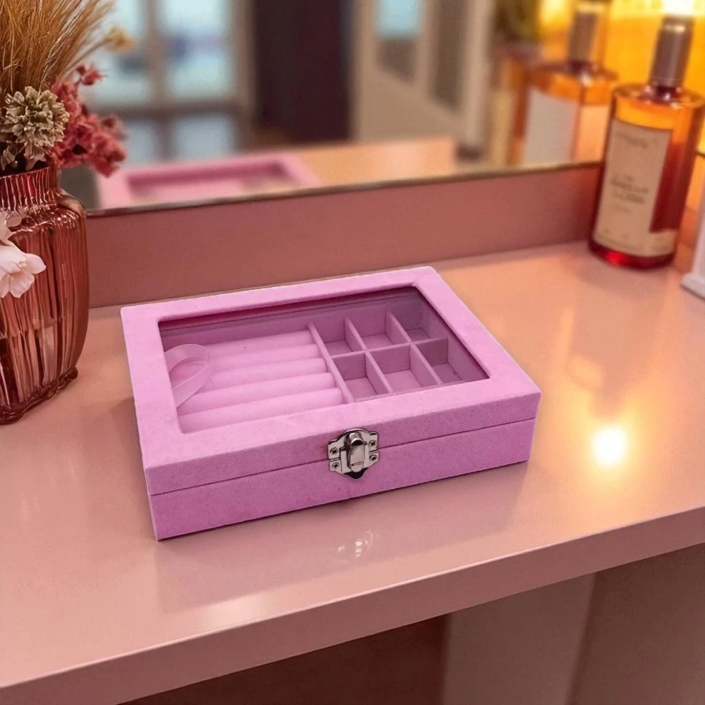احفظي مجوهراتك الثمينة بأمان وتنظيم دائم ✨ تتميز هذه العلبة الأنيقة بقفل أمان معدني وبطانة داخلية من المخمل الناعم لحماية الخواتم، الأقراط، العقود والأساور من الخدوش والغبار. مدمجة، أنيقة وعملية – مثالية للاستخدام اليومي، السفر أو كهديّة فاخرة 🎁