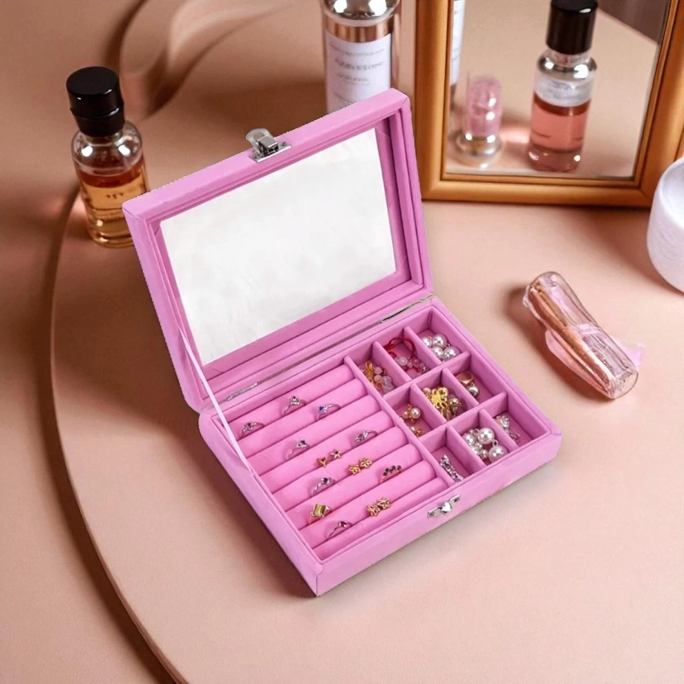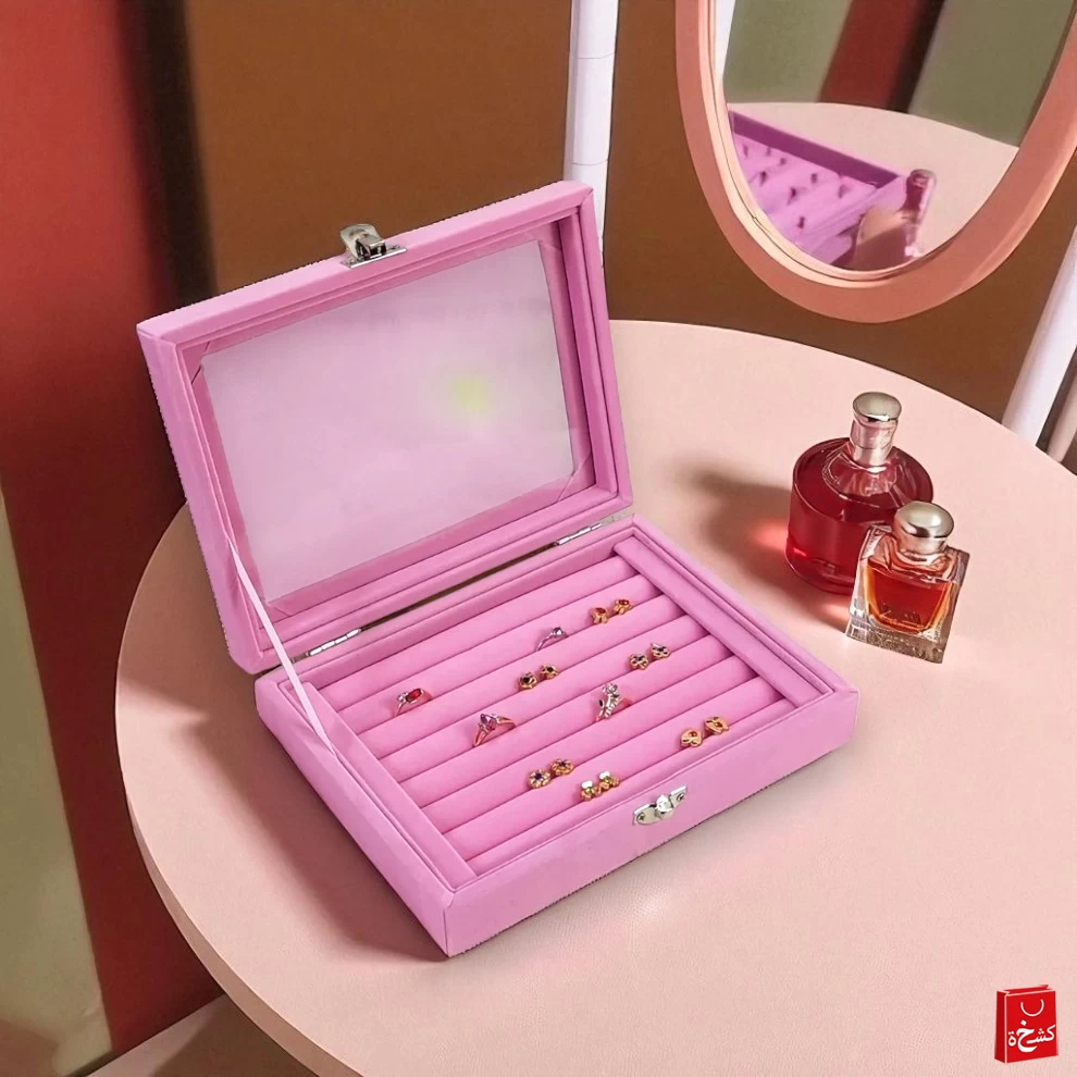 💍 علبة تخزين مجوهرات بقفل أمان – منظم مخملي أنيق
