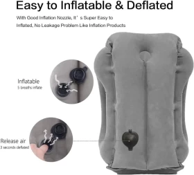 هذه الوسادة لا تأتي مع مضخة هواء، لكن يمكن نفخها بسهولة باستخدام الفم خلال 120 ثانية فقط (أو 5 أنفاس عميقة). سريعة