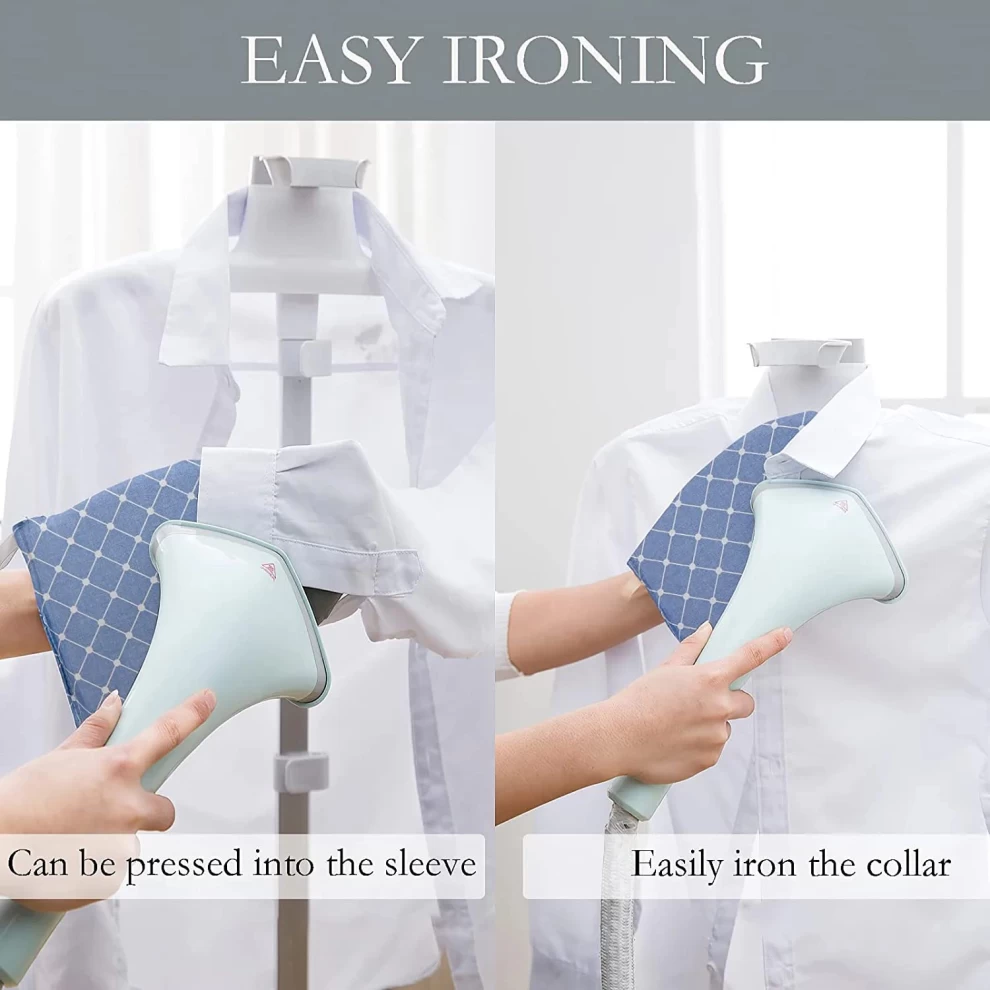 • يزيل بسهولة جميع أنواع التجاعيد من الملابس، ويمكن استخدام كلتا اليدين دون قيود، حيث يمكن استخدام السطح العريض لكي الملابس والطرف المدبب لكي الأكمام.
