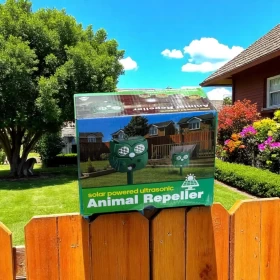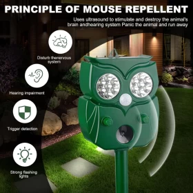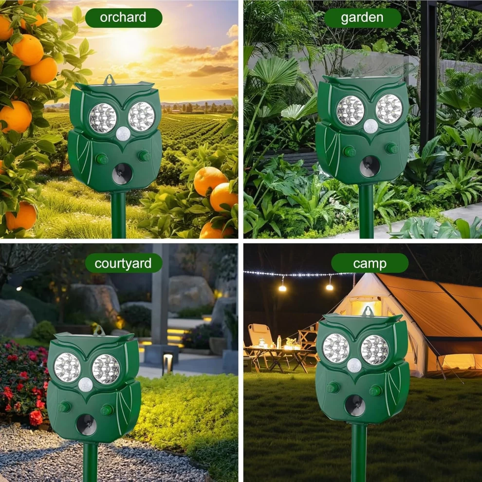 أبعد الحيوانات غير المرغوب بها بطريقة إنسانية باستخدام هذا الجهاز بالطاقة الشمسية. يجمع بين الإضاءة، كاشف الحركة، والموجات فوق الصوتية لطرد القطط، الكلاب، القوارض والمزيد – مثالي للحدائق والشرفات.