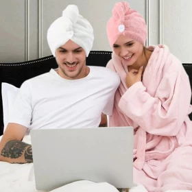 • منشفة تجفيف الشعر المصنوعة من الألياف الدقيقة مصنوعة من منشفة من الألياف الدقيقة فائقة الامتصاص وسميكة، تمتص الماء بعيدًا عن الشعر بسرعة وتوفر وقتك، وتقلل بشكل كبير من الضرر الناتج عن الحرارة من مجفف الشعر.