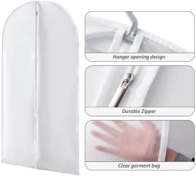 • حقيبة ملابس شفافة وخفيفة الوزن: قم بتخزين الملابس بشكل مريح باستخدام حقيبة الغطاء الواقية هذه التي تحافظ على ملابسك خالية من الغبار والأوساخ والحشرات. إنها خفيفة الوزن وسهلة التعليق تمامًا ومريحة للنقل.