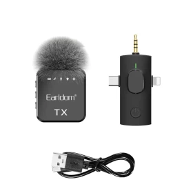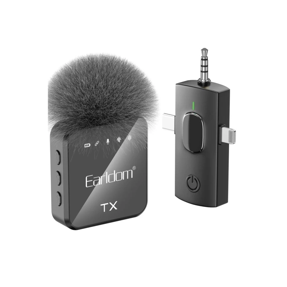 ميكروفون Earldom MC12 لاسلكي عالي الجودة مصمم لمنشئي المحتوى ومدوني الفيديو والمحترفين. بفضل تصميمه ثلاثي الأبعاد، فهو متوافق مع أجهزة الصوت من النوع C وLightning و3.5 مم، مما يضمن اتصالاً سلساً.