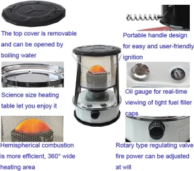 حافظ على الدفء وسهولة الطهي مع مدفأة الكيروسين SM-95. مثالية للرحلات، التخييم، الصيد، أو أي نشاطات خارجية. يمكنها تسخين المكان وطهي الطعام أو غلي الماء بأمان.