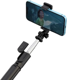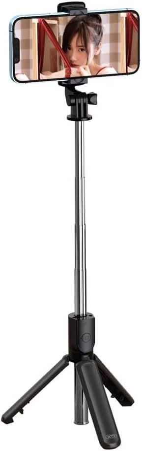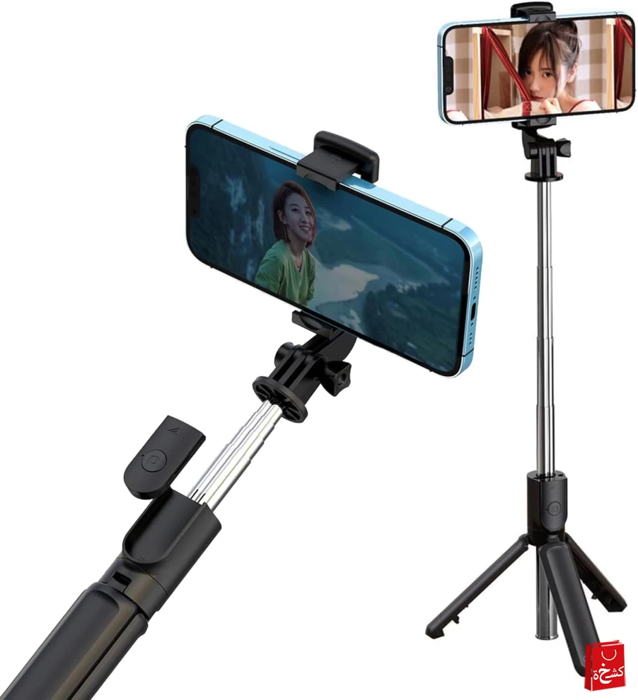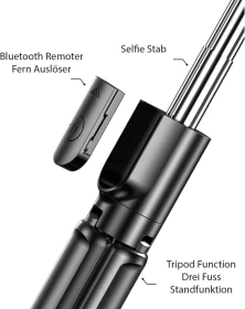 حامل ثلاثي القوائم 3 في 1 مع جهاز تحكم عن بعد يعمل بالبلوتوث. جيد جدًا للإمساك به بيد واحدة. أو يمكنك فتح الحامل واستخدامه كحامل ثلاثي القوائم لتسجيل الصور والفيديو. مثالي لتسجيل الصور بالفيديو أو التسجيلات الحية لتيك توك أو إنستغرام