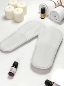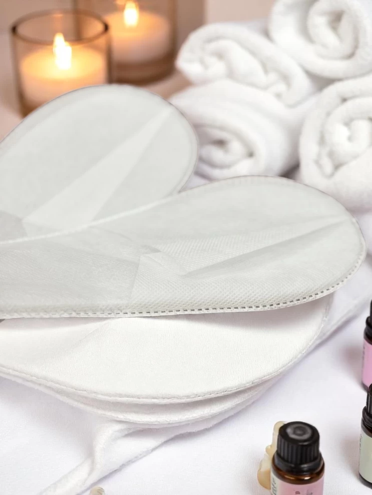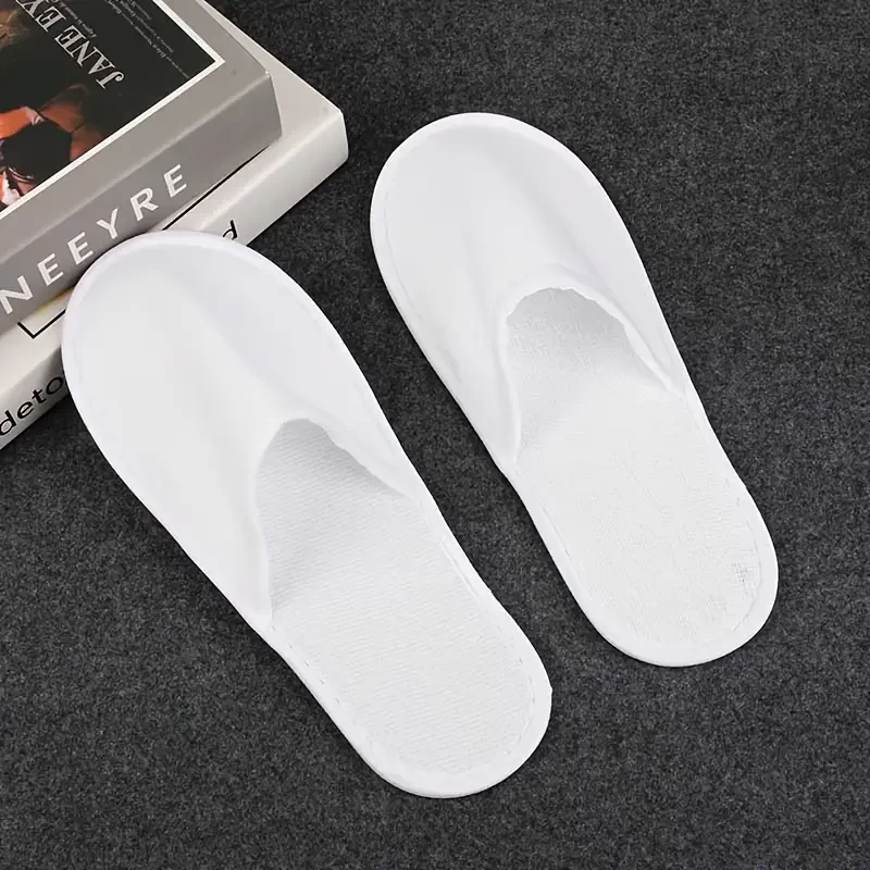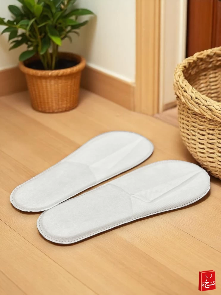 رحّب بضيوفك براحة ونظافة مع هذه الشباشب القطنية البيضاء الخفيفة. مصممة للاستخدام لمرة واحدة فقط، ناعمة، صحية، ومثالية للحفاظ على نظافة الأرضيات مع توفير راحة وأمان للقدمين. مثالية للفنادق، والمنتجعات، والصالونات، أو حتى في المنزل عند استقبال الزوار. تأتي العبوة بـ ٥ أزواج، كل زوج يحتوي على نعل EVA غير قابل للانزلاق لتجنب الحوادث على الأسطح المبللة.